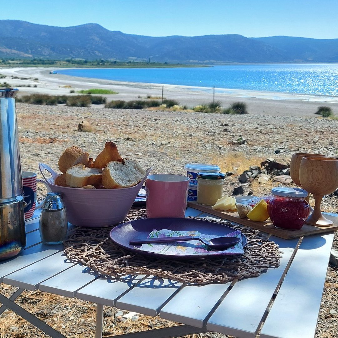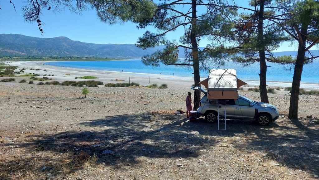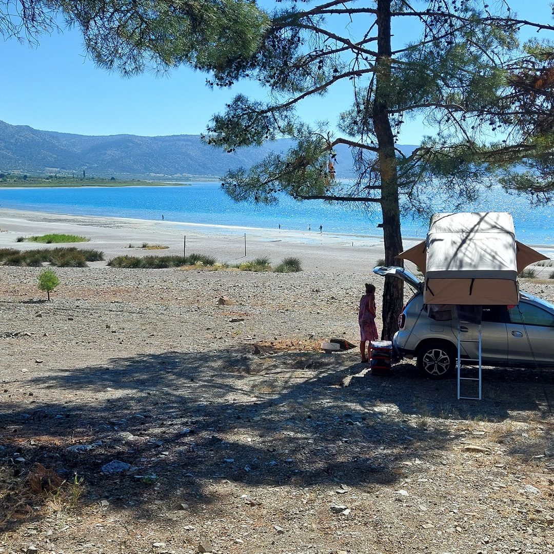 Podróżując kamperem objechałem całe jezioro — znalazłem kilka miejsc na nocleg z pięknym widokiem, choć nie wszędzie łatwo dojść do wody. W samej okolicy Doğanbaba i w pobliskiej miejscowości Merkez dostępne są także mniej formalne pola kempingowe i noclegi, choć ich standard może odbiegać od naszych oczekiwań. Tutaj warto nastawić się przede wszystkim na prostotę i kontakt z naturą. Nie licz na luksusy – to miejsce dla tych, którzy chcą poczuć prawdziwą bliskość przyrody i eksperymentować z własną organizacją wypoczynku.