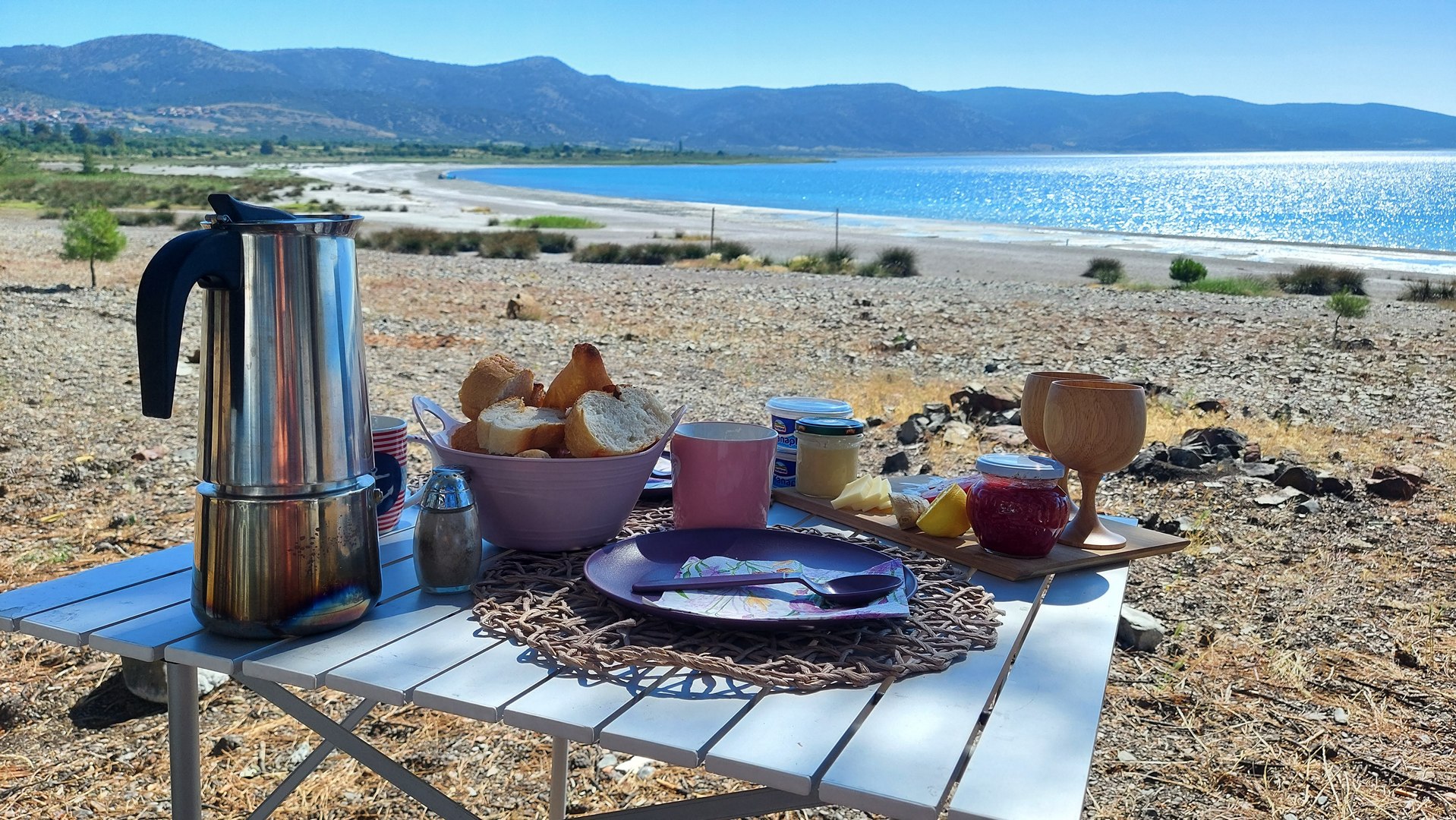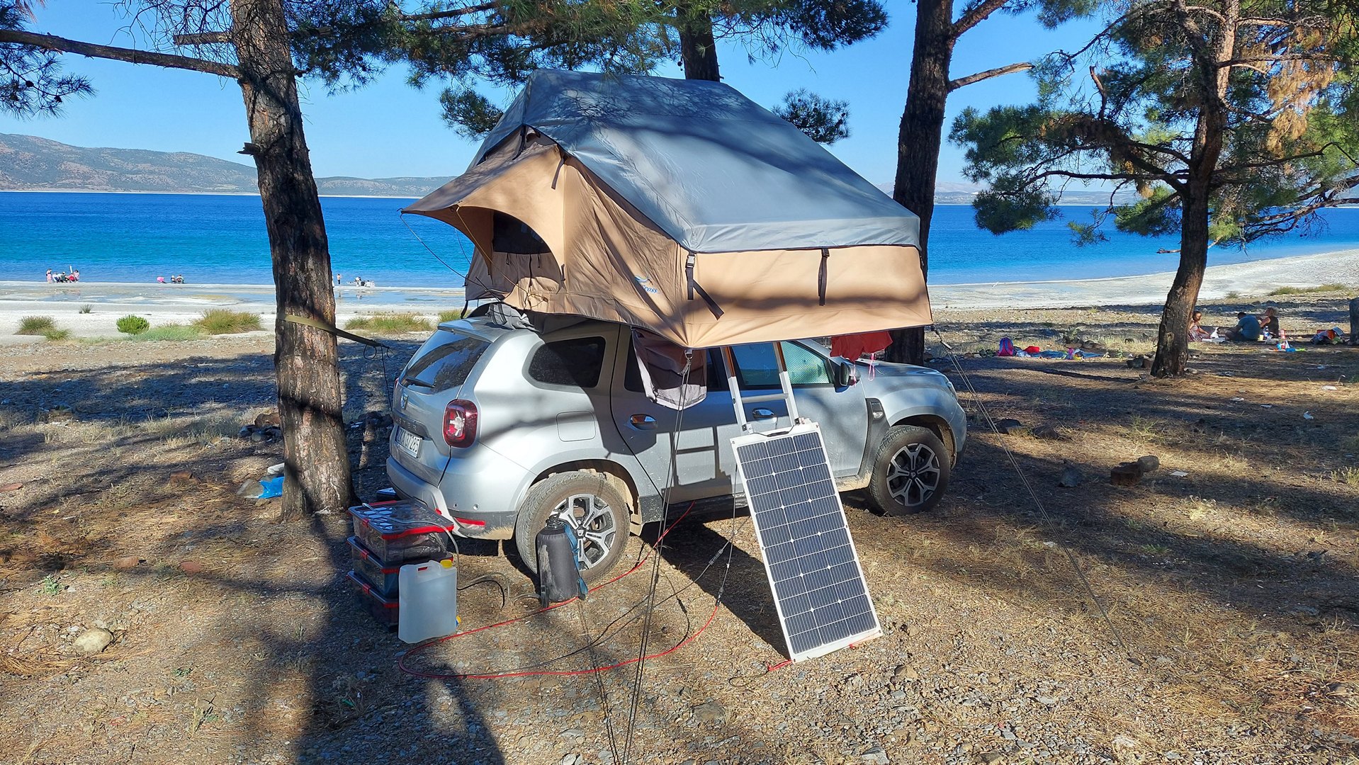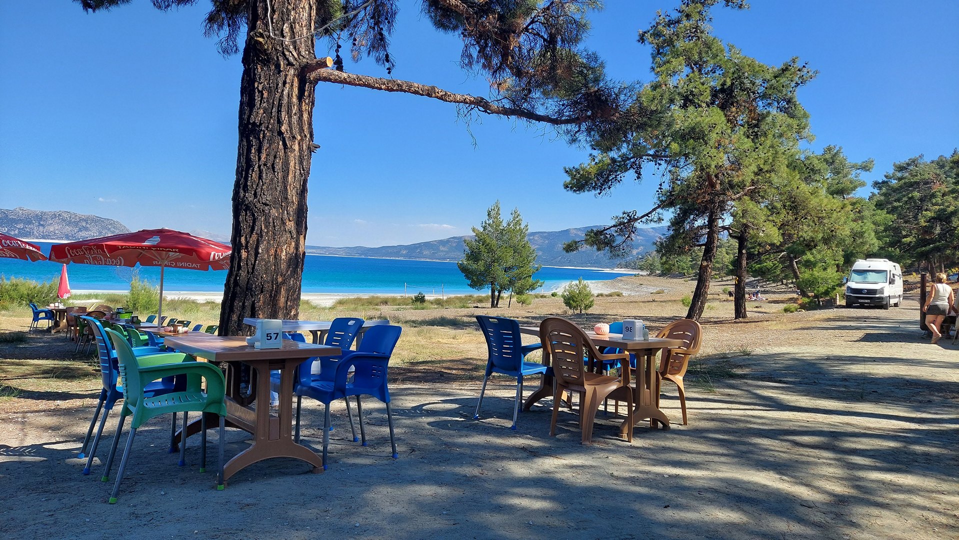 Podróżując kamperem objechałem całe jezioro — znalazłem kilka miejsc na nocleg z pięknym widokiem, choć nie wszędzie łatwo dojść do wody. W samej okolicy Doğanbaba i w pobliskiej miejscowości Merkez dostępne są także mniej formalne pola kempingowe i noclegi, choć ich standard może odbiegać od naszych oczekiwań. Tutaj warto nastawić się przede wszystkim na prostotę i kontakt z naturą. Nie licz na luksusy – to miejsce dla tych, którzy chcą poczuć prawdziwą bliskość przyrody i eksperymentować z własną organizacją wypoczynku.