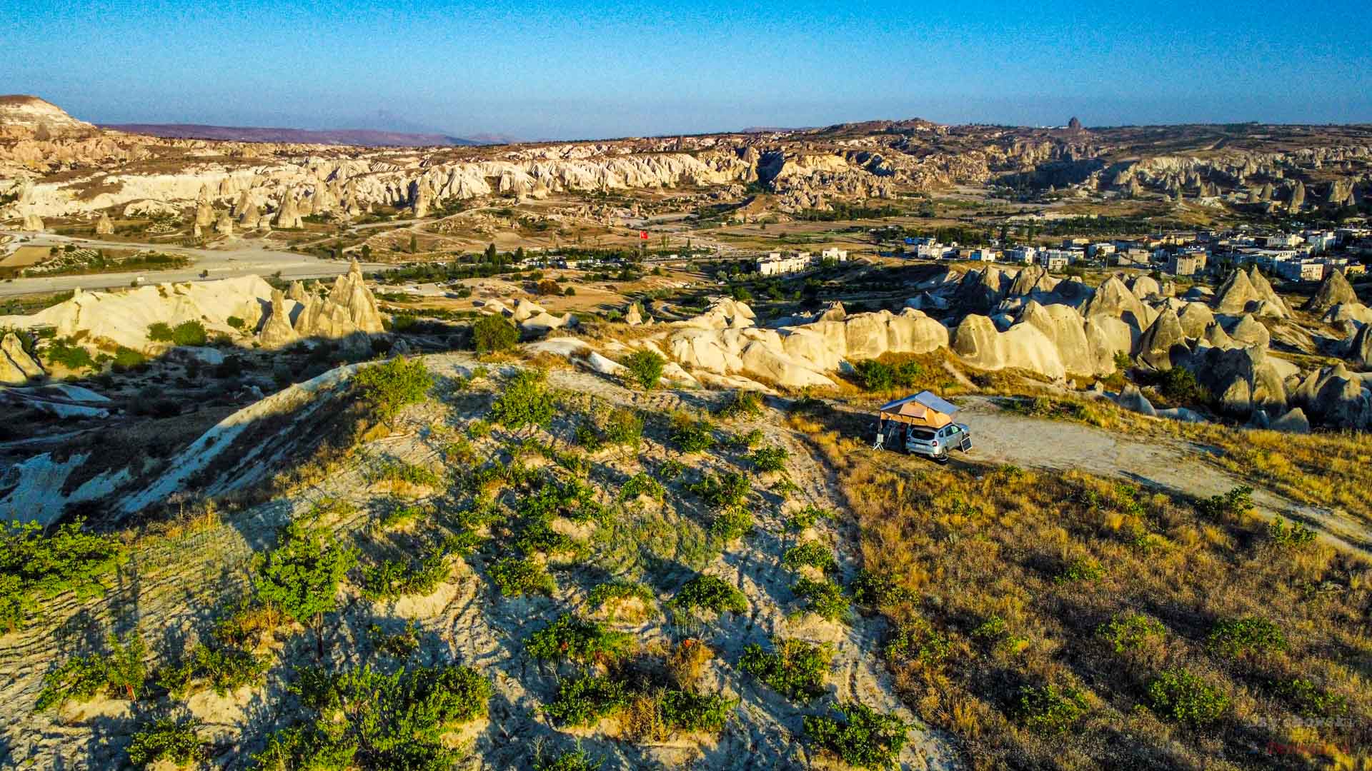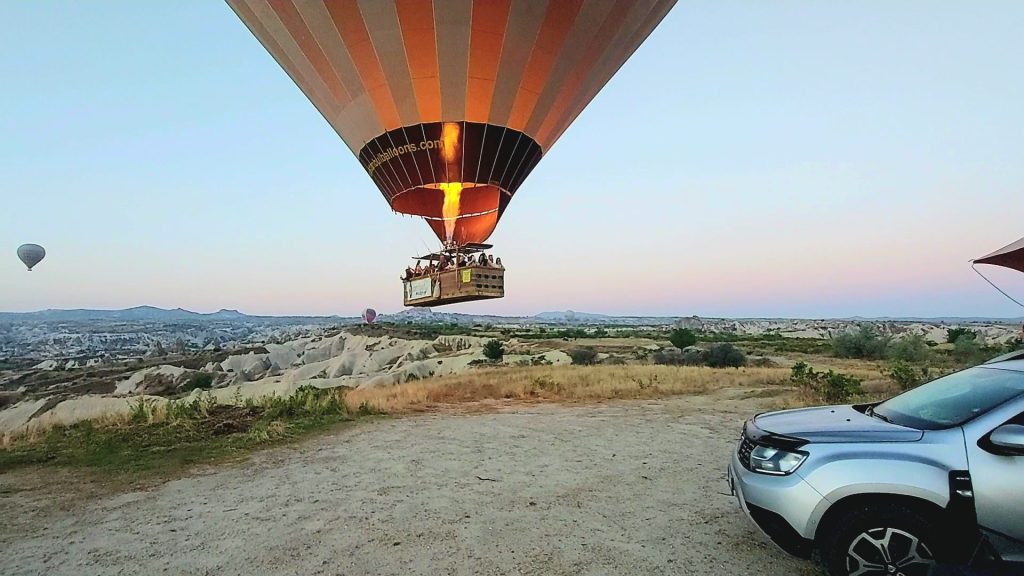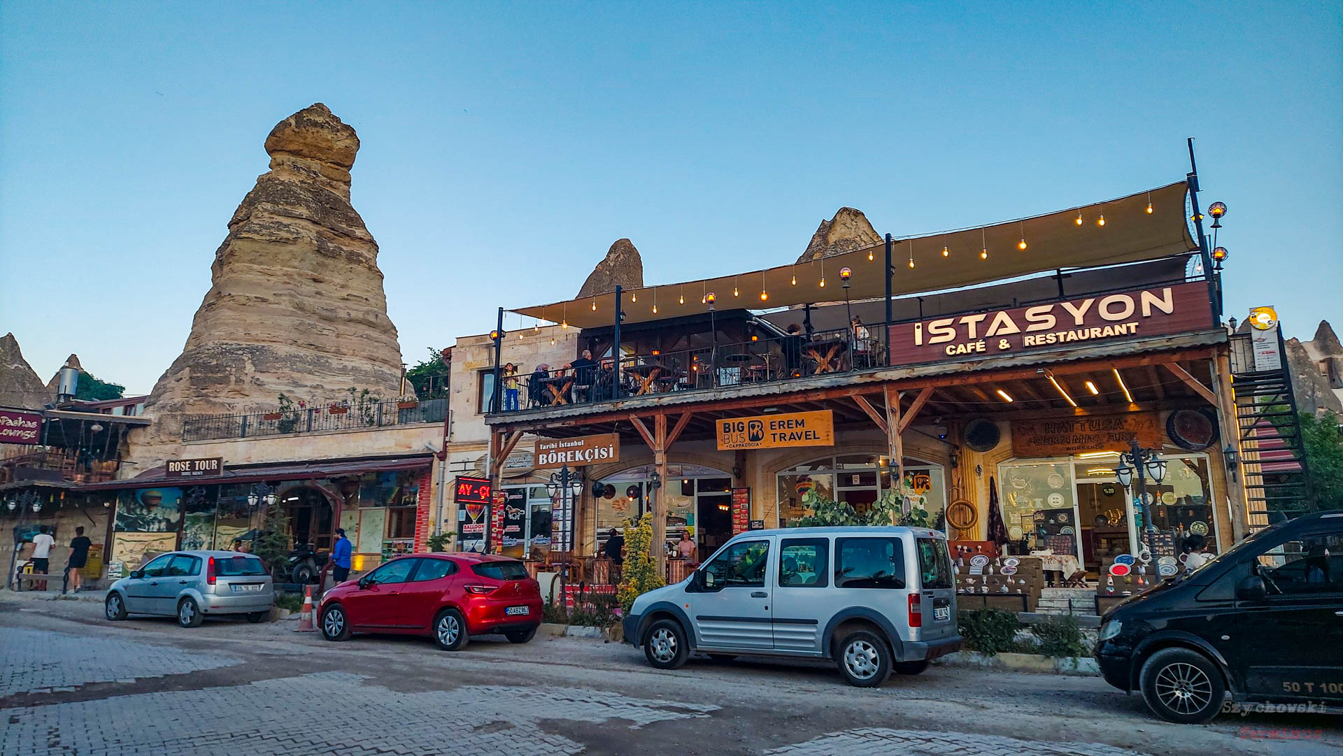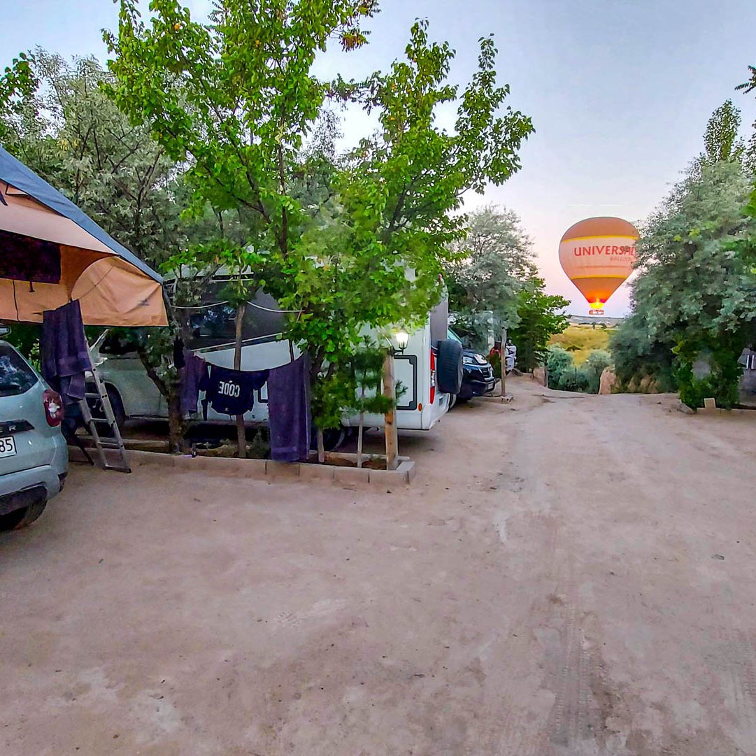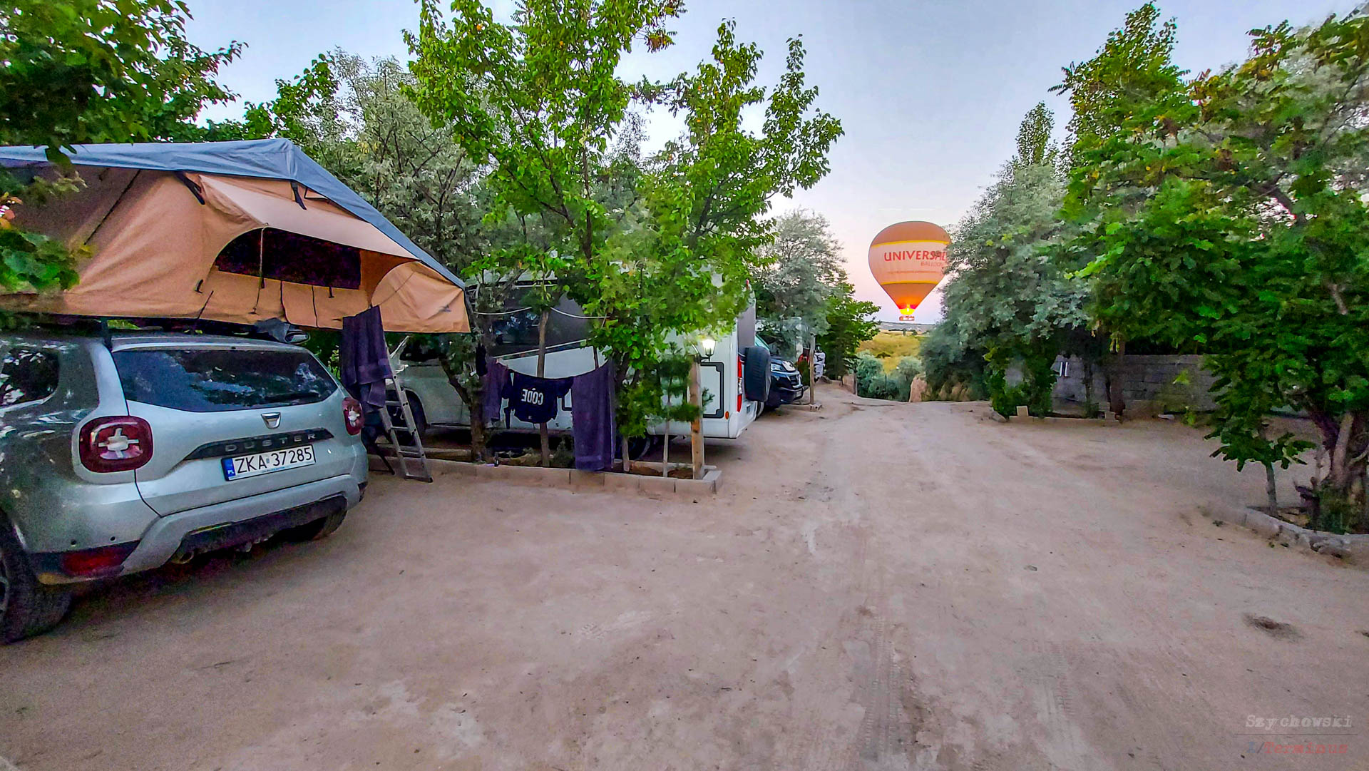Poza hotelami – których tutaj nie opiszę, istnieją jeszcze miejsca w Goreme do których można się wcisnąć „na dziko”. W sezonie letnim będzie to oczywiście wyzwanie ze względu na temperaturę jak również zaopatrzenie w wodę, ale jeśli dajesz radę podróżować w sezonie letnim po Turcji kamperem lub kampervanem to z pewnością i dasz radę na biwak. Jak się już wymęczysz i zapragniesz trochę cywilizacji to polecam camping Panorama. Posiada taras z którego można podziwiać loty balonów. Na miejscu basen, kuchnia. Cena w 2023 roku za miejsce oscylowała w granicach 600 TRY, myślę że 2025 to ok 1000 TRY (2 os + auto) a może trochę więcej, ale warto, szczególnie wtedy kiedy chcesz wieczorem pochodzić po Międzyzdrojach…upsss Goreme.