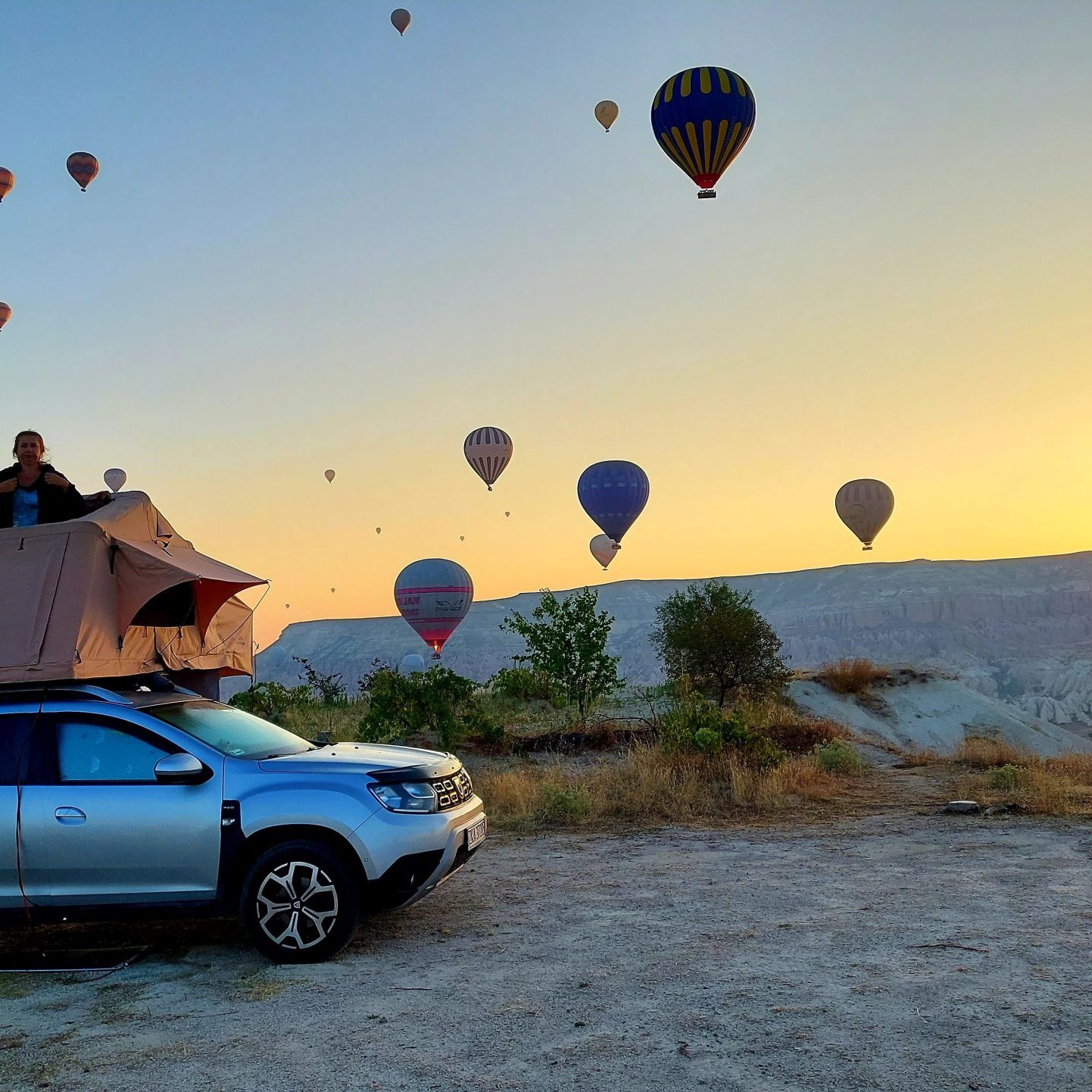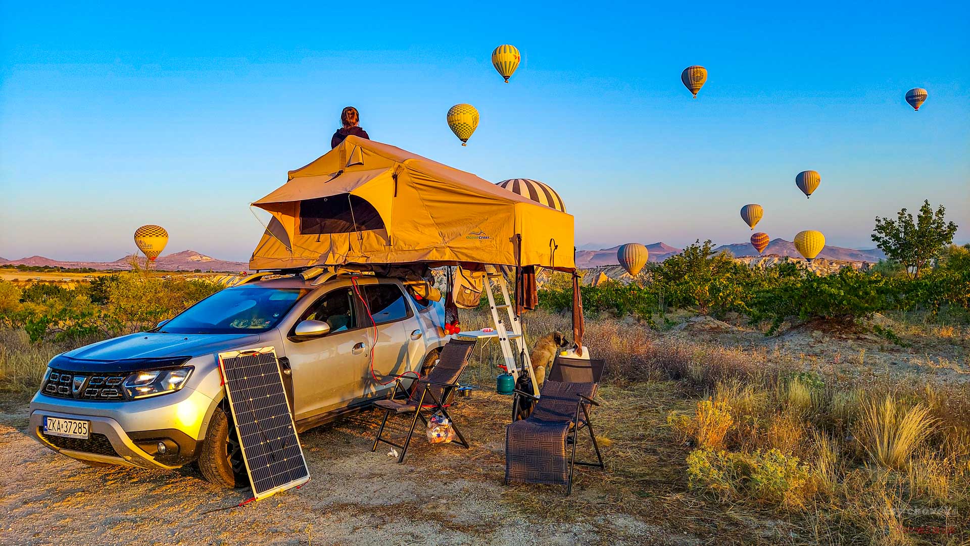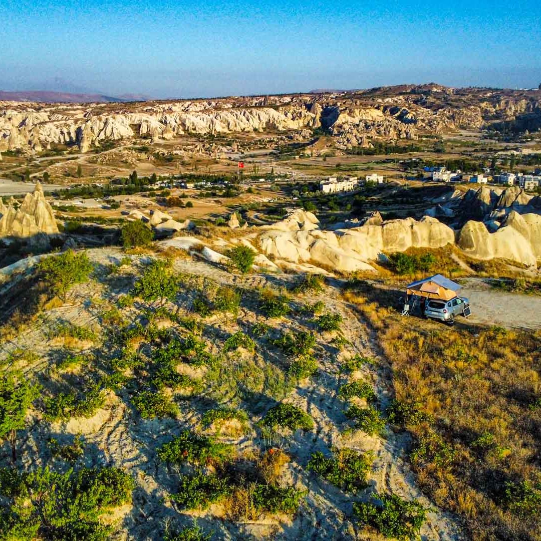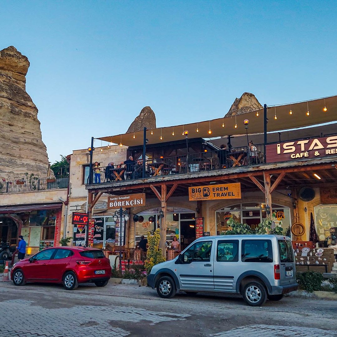 Poza hotelami – których tutaj nie opiszę, istnieją jeszcze miejsca w Goreme do których można się wcisnąć „na dziko”. W sezonie letnim będzie to oczywiście wyzwanie ze względu na temperaturę jak również zaopatrzenie w wodę, ale jeśli dajesz radę podróżować w sezonie letnim po Turcji kamperem lub kampervanem to z pewnością i dasz radę na biwak. Jak się już wymęczysz i zapragniesz trochę cywilizacji to polecam camping Panorama. Posiada taras z którego można podziwiać loty balonów. Na miejscu basen, kuchnia. Cena w 2023 roku za miejsce oscylowała w granicach 600 TRY, myślę że 2025 to ok 1000 TRY (2 os + auto) a może trochę więcej, ale warto, szczególnie wtedy kiedy chcesz wieczorem pochodzić po Międzyzdrojach…upsss Goreme.