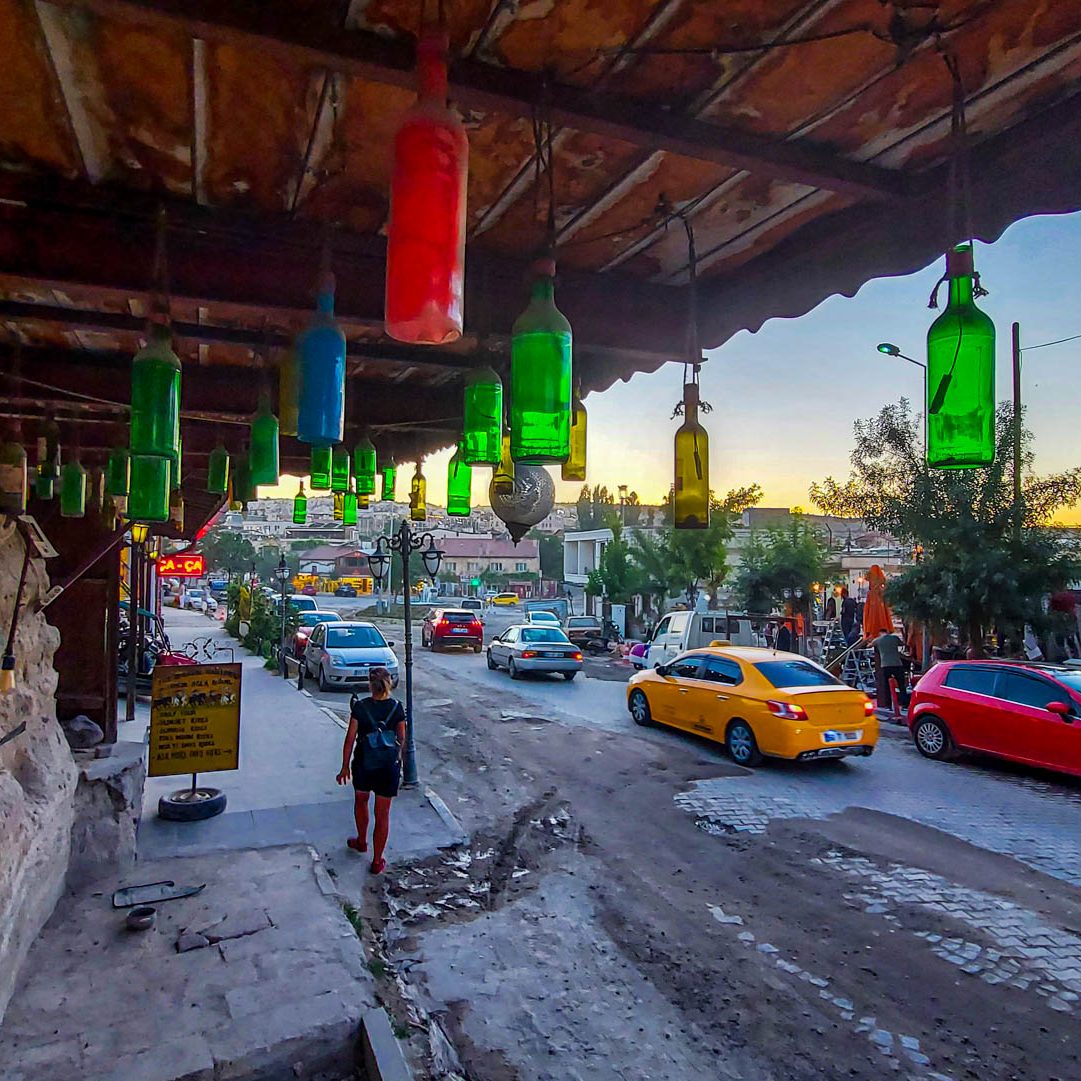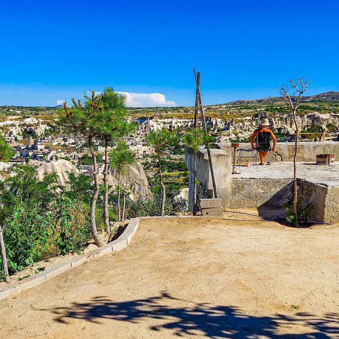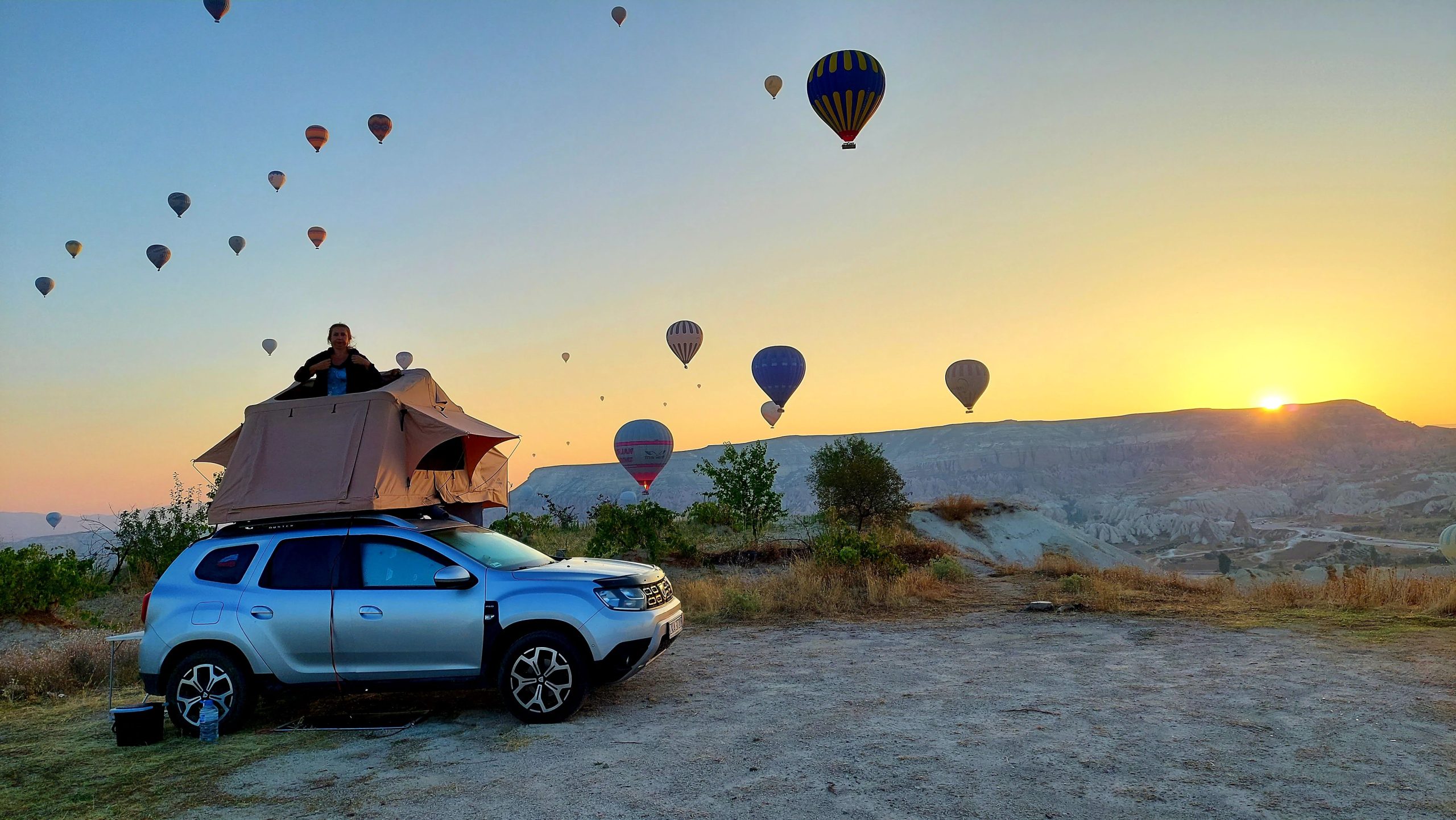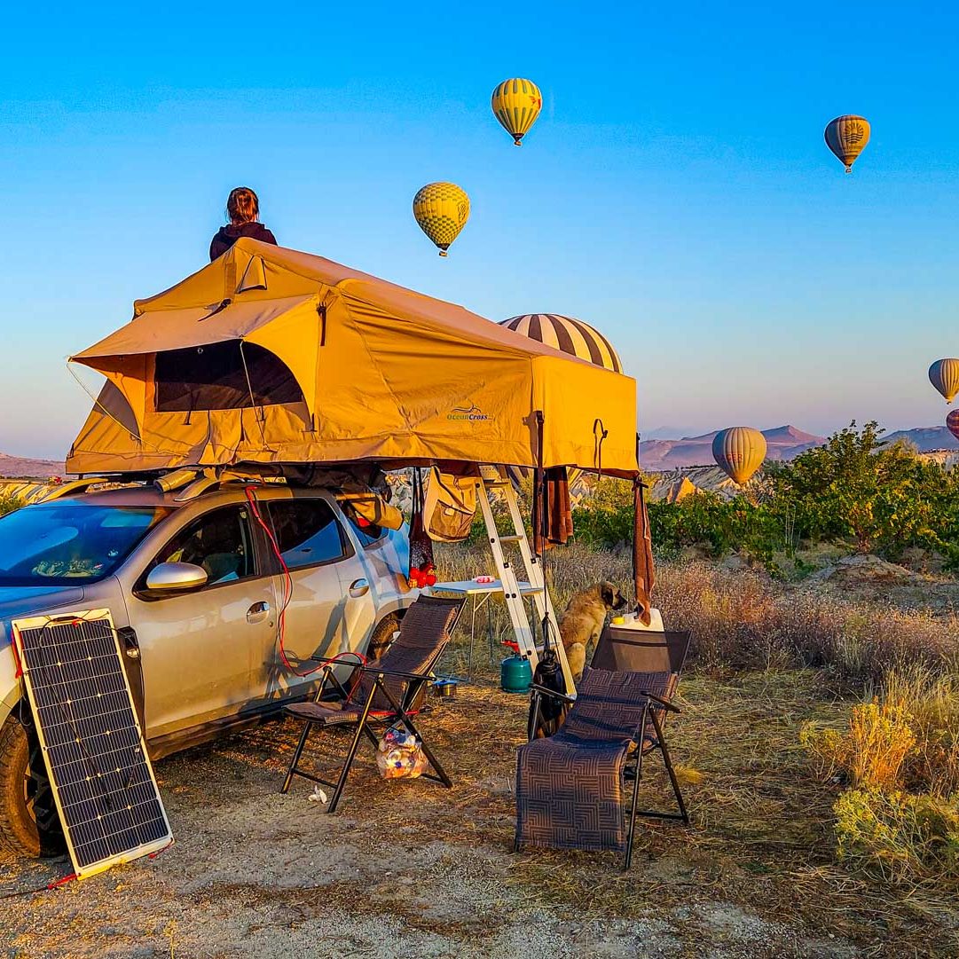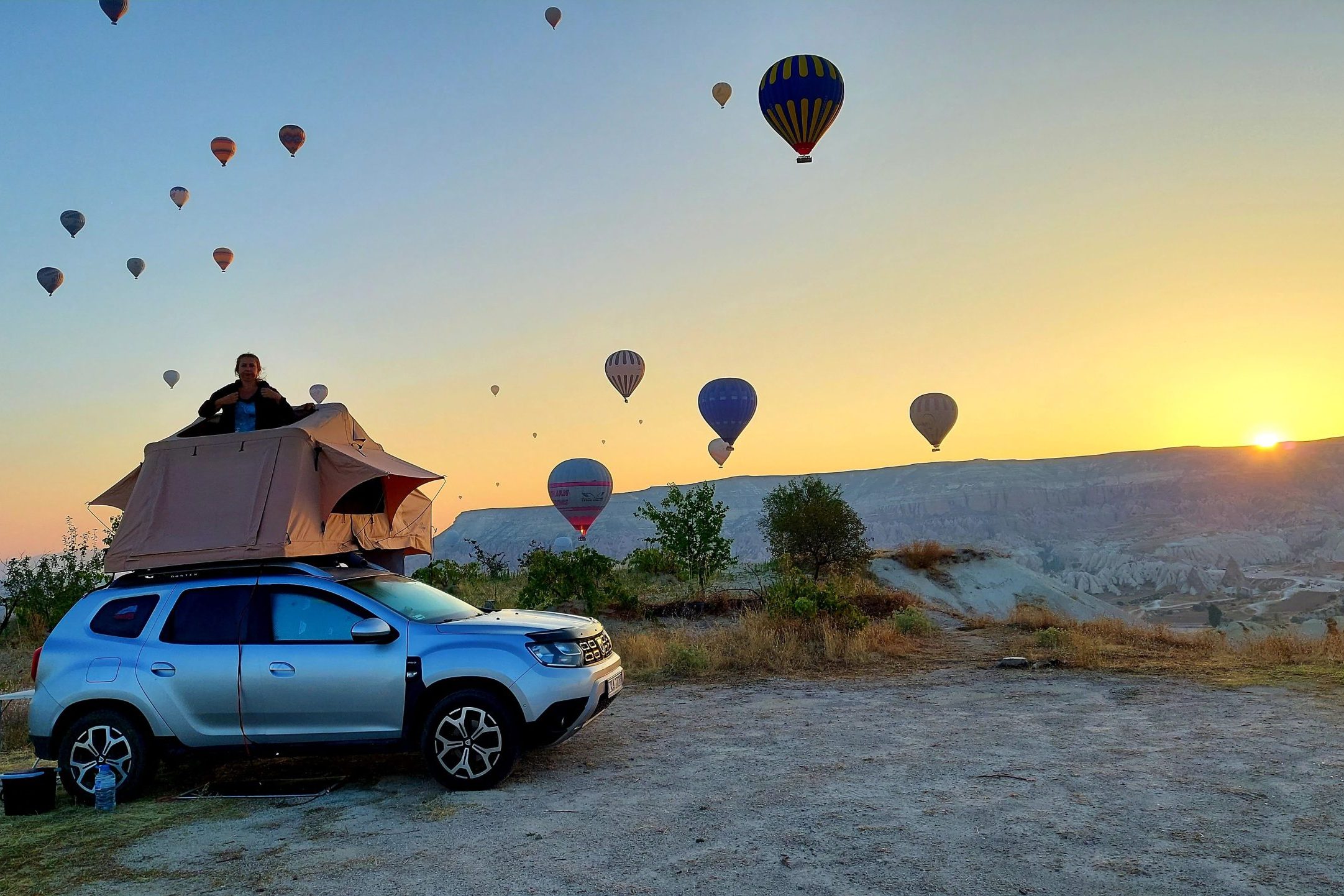 Poza hotelami – których tutaj nie opiszę, istnieją jeszcze miejsca w Goreme do których można się wcisnąć „na dziko”. W sezonie letnim będzie to oczywiście wyzwanie ze względu na temperaturę jak również zaopatrzenie w wodę, ale jeśli dajesz radę podróżować w sezonie letnim po Turcji kamperem lub kampervanem to z pewnością i dasz radę na biwak. Jak się już wymęczysz i zapragniesz trochę cywilizacji to polecam camping Panorama. Posiada taras z którego można podziwiać loty balonów. Na miejscu basen, kuchnia. Cena w 2023 roku za miejsce oscylowała w granicach 600 TRY, myślę że 2025 to ok 1000 TRY (2 os + auto) a może trochę więcej, ale warto, szczególnie wtedy kiedy chcesz wieczorem pochodzić po Międzyzdrojach…upsss Goreme.