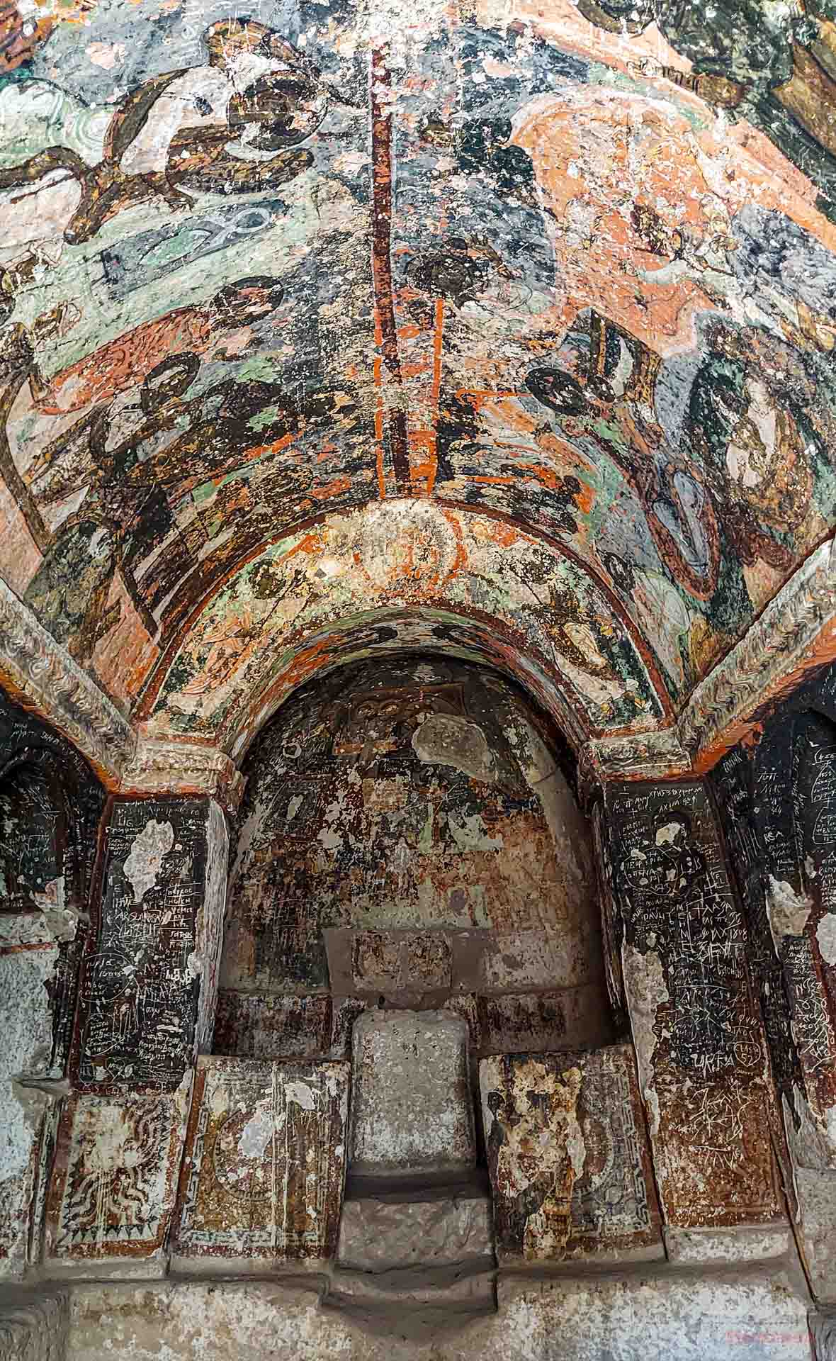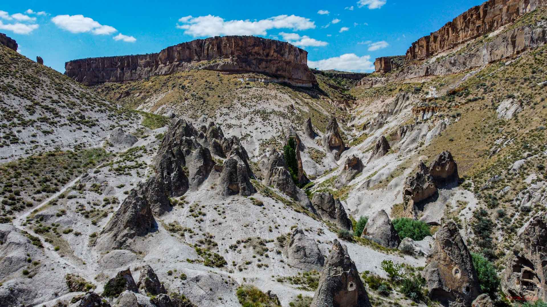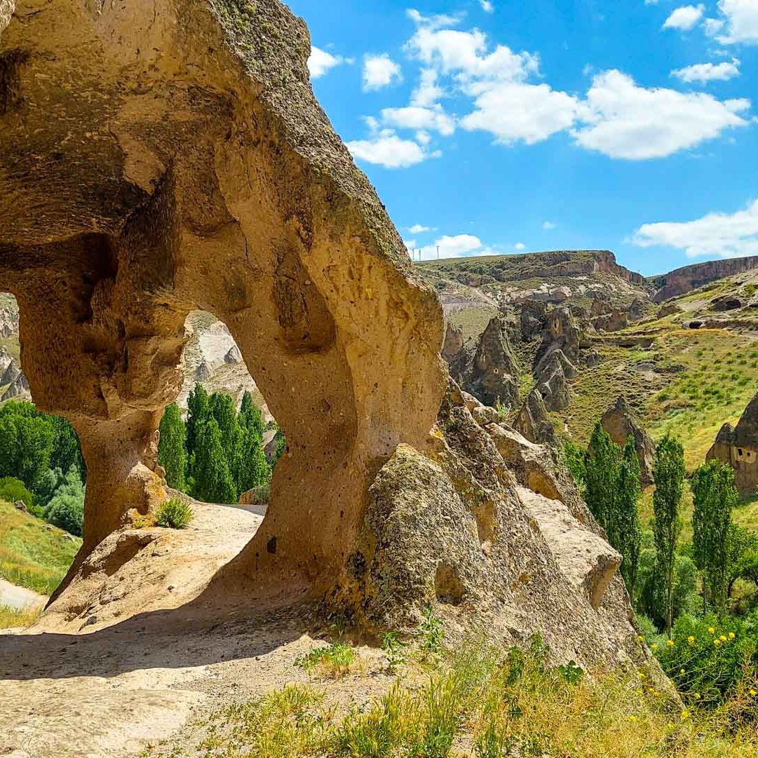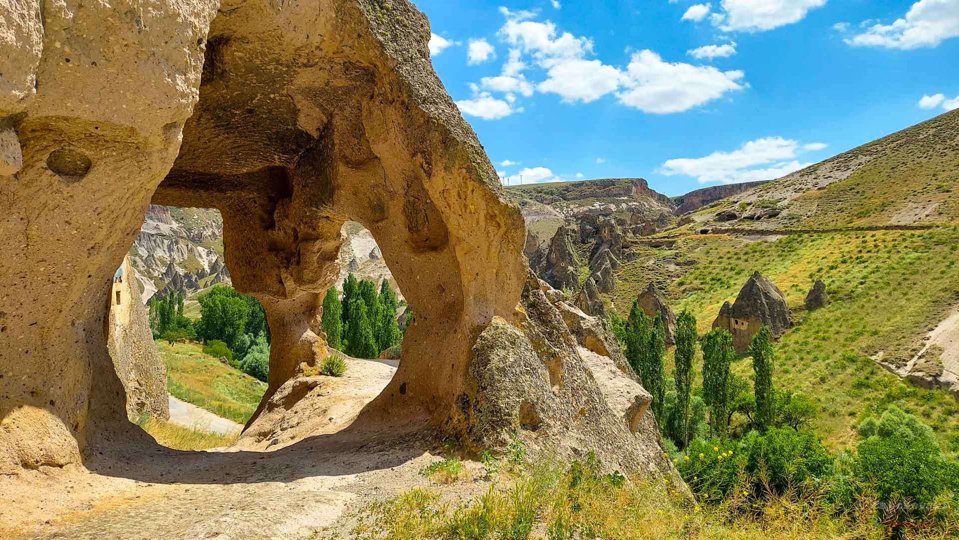 Kręcąc się po okolicy, trafisz, a może nie (dlatego napiszę) – do doliny Ihlara. To niesamowite miejsce, gdzie rzeka Melendiz malowniczo wije się między stromymi klifami, a wśród bujnej zieleni kryją się wykute w skale kościoły z bizantyjskimi freskami. Spacerując jej dnem, możesz poczuć się jak odkrywca wędrujący przez zapomniany raj. Można skorzystać z parkingu i ścieżek turystycznych, można też…. na dziko. Pamiętajmy jednak, że tu nie UE i droga może w którymś momencie znacznie się pogorszyć lub zniknąć bez ostrzeżenia. A wtedy – ratuj się kto może! Gorzej jak kto nie może ;-(