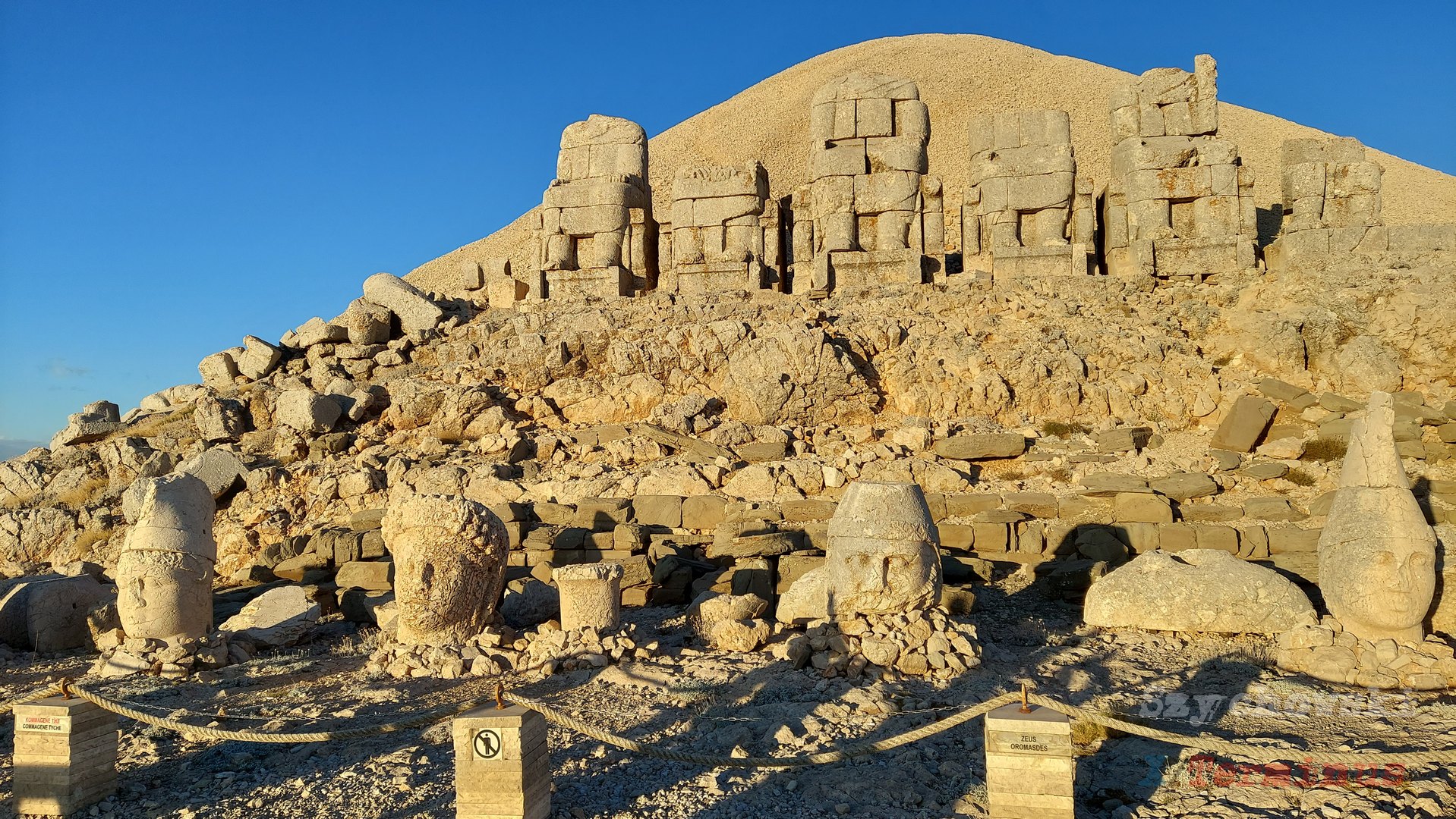 Centralnym elementem Góry Nemrut są gigantyczne kamienne posągi, które przedstawiają bóstwa starożytnego świata, takie jak Zeus, Apollo, Herkules oraz samego Antiocha I. Te monumentalne rzeźby o wysokości kilku metrów były pierwotnie częścią większych figur, które z czasem uległy zniszczeniu, a ich ogromne głowy opadły na ziemię, tworząc niezwykły, mistyczny widok. Te kamienne kolosy są rozmieszczone na dwóch platformach – wschodniej i zachodniej – co pozwala na podziwianie wspaniałych wschodów i zachodów słońca, które stały się jedną z głównych atrakcji turystycznych tego miejsca.