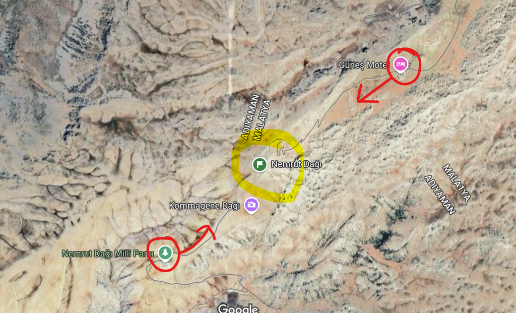 Pierwsza z nich to dojazd do Motelu Gunes (nocleg 2 os + kolacja + śniadanie ok 70 euro – 2023 rok). Po wykupieniu biletu wstępu można podjechać swoim autem lub przy pomocy „przewodnika” po samą górę, właściwie 100m od platformy z posągami. Można zrezygnować z noclegu w motelu i spać w swoim aucie na placu obok motelu (nie wiem czy jest wnoszona za to jakaś opłata). Można również kilkaset metrów wcześniej zjechać na płaskowyż i tam spędzić noc, ale… Jest tabliczka o niebezpieczeństwie spotkania niedźwiadka, jak również jest informacja że jest to rejon cmentarny. Buona notte 😉