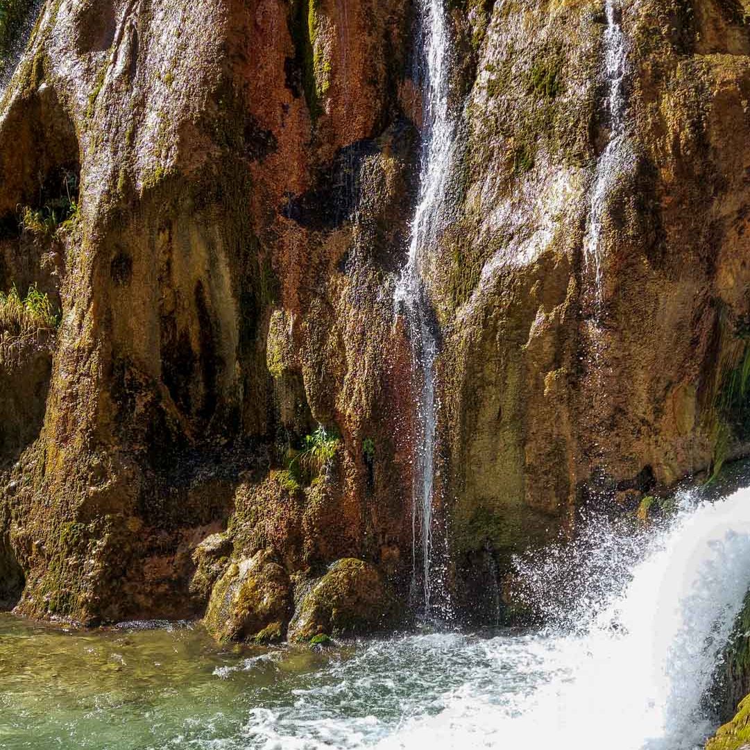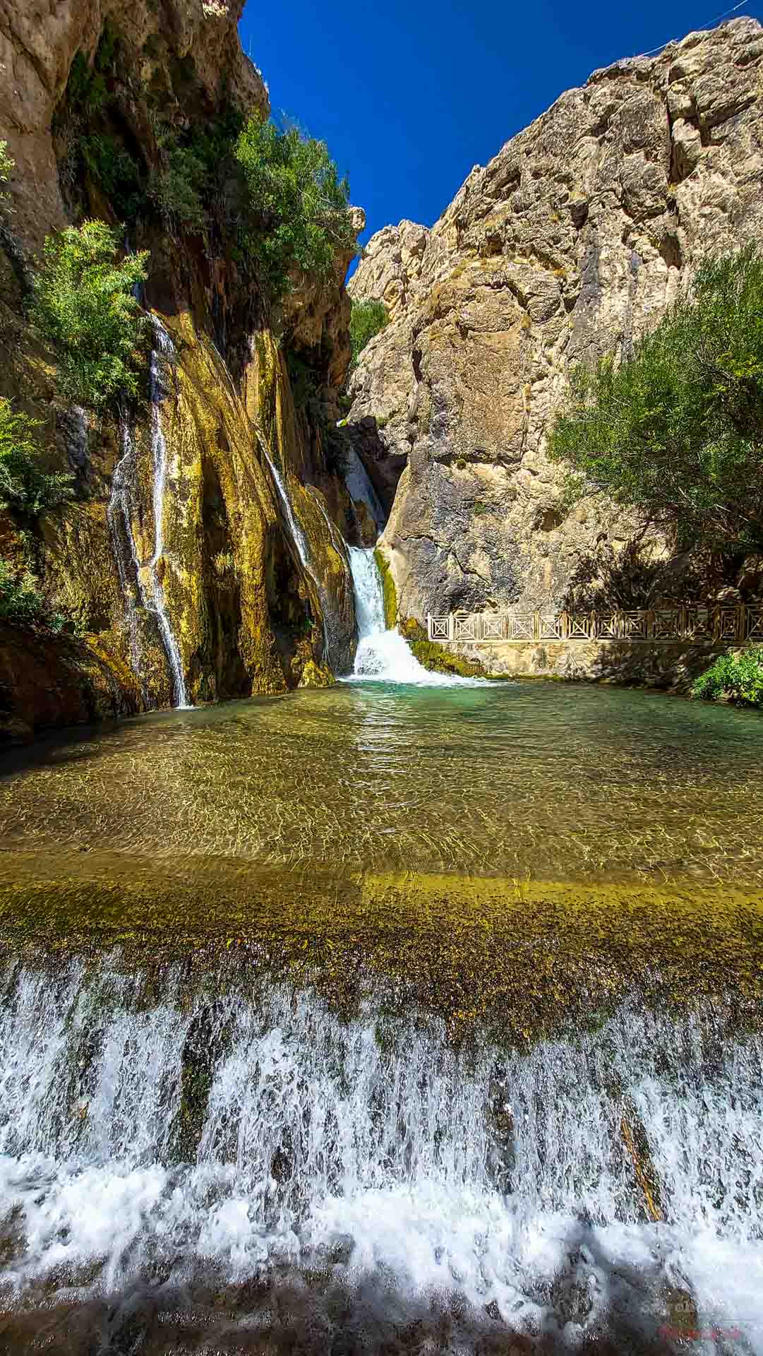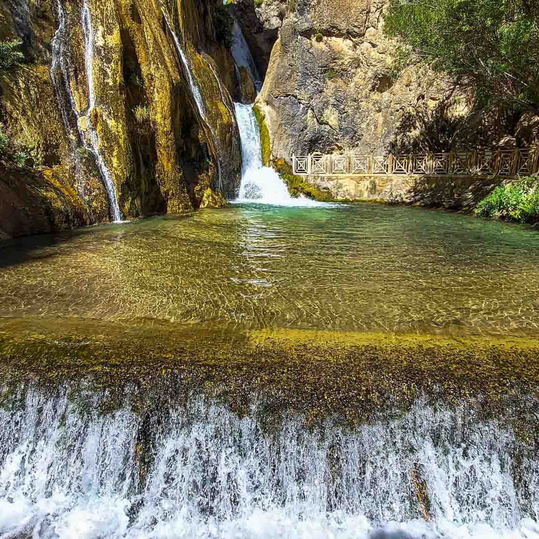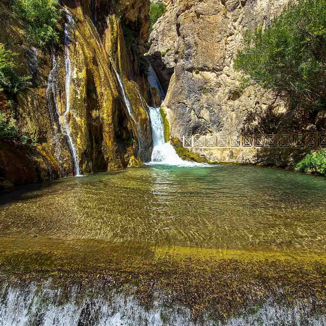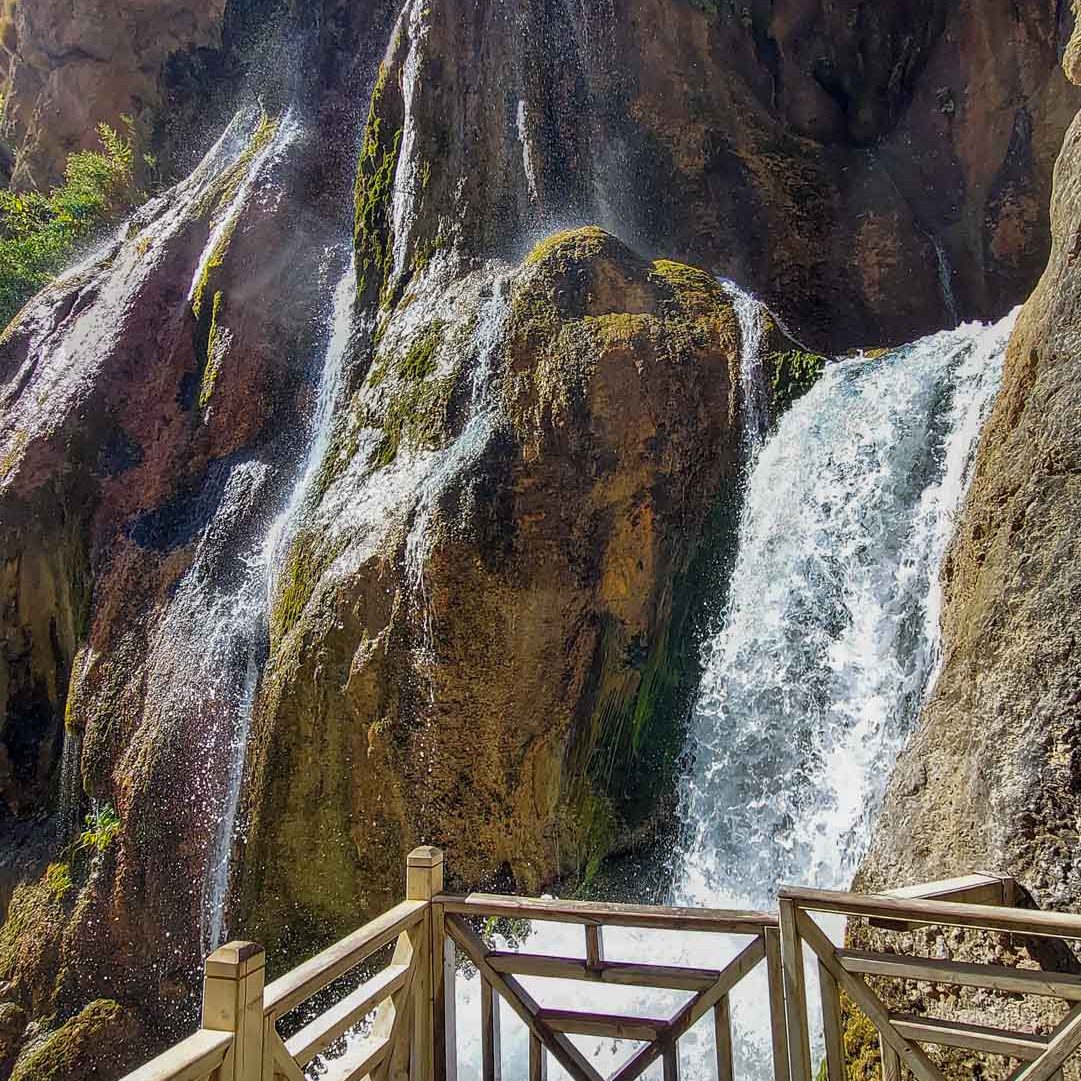 Wodospad rozciąga się na kilku poziomach, a krystalicznie czysta woda spada z dużej wysokości, rozbijając się o skalne półki, tworząc chłodną mgiełkę i przyjemny mikroklimat. Otoczony zielenią i skalistym krajobrazem, stanowi idealne miejsce na odpoczynek, piknik lub po prostu kontemplację przy dźwiękach natury. W pobliżu znajduje się również punkt widokowy oraz ścieżki spacerowe, które pozwalają na spokojne eksplorowanie okolicy.