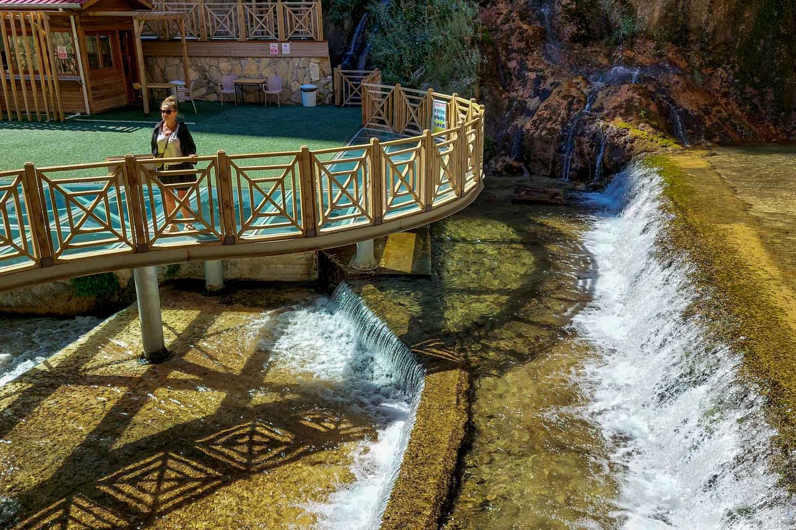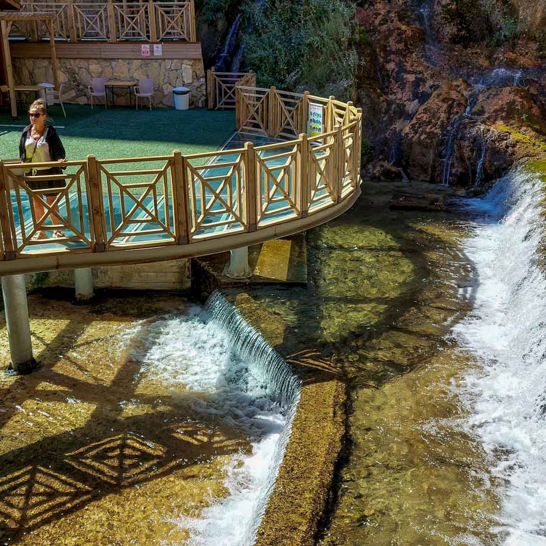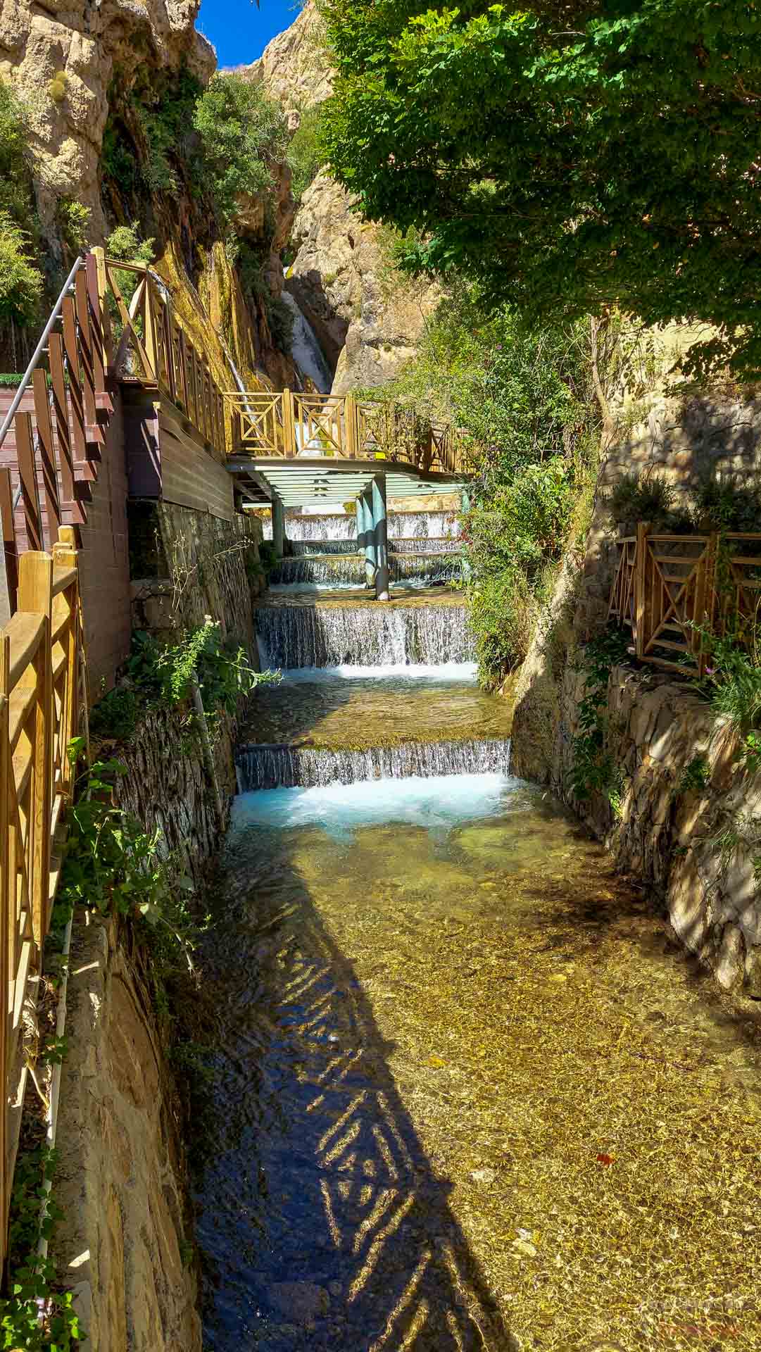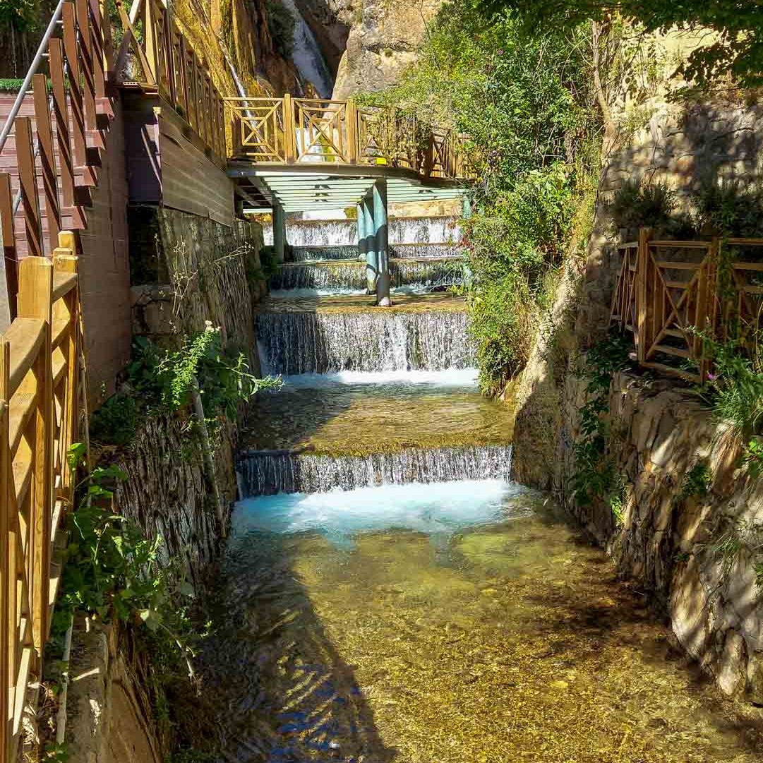 Wodospad rozciąga się na kilku poziomach, a krystalicznie czysta woda spada z dużej wysokości, rozbijając się o skalne półki, tworząc chłodną mgiełkę i przyjemny mikroklimat. Otoczony zielenią i skalistym krajobrazem, stanowi idealne miejsce na odpoczynek, piknik lub po prostu kontemplację przy dźwiękach natury. W pobliżu znajduje się również punkt widokowy oraz ścieżki spacerowe, które pozwalają na spokojne eksplorowanie okolicy.